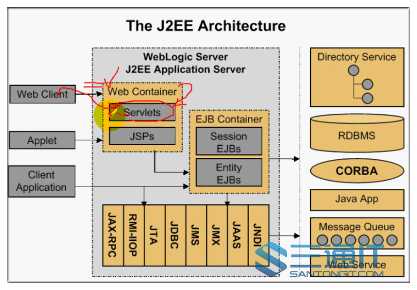 1、请画出J2EE体系结构图,并解释其中的组件的作用